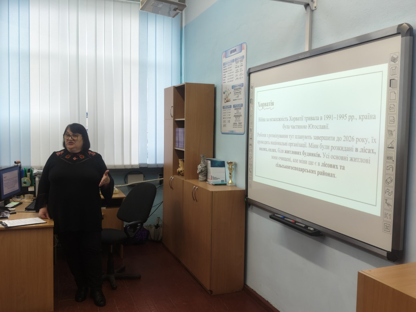 Педагог разом із учнями спростовували міфи про вибухонебезпечні предмети, на прикладі країн, де велися воєнні дії, довели, що розмінування потребує багато часу, а отже, обачності й уваги населення. Наприкінці уроку учням було запропоновано відповісти на запитання вікторини.