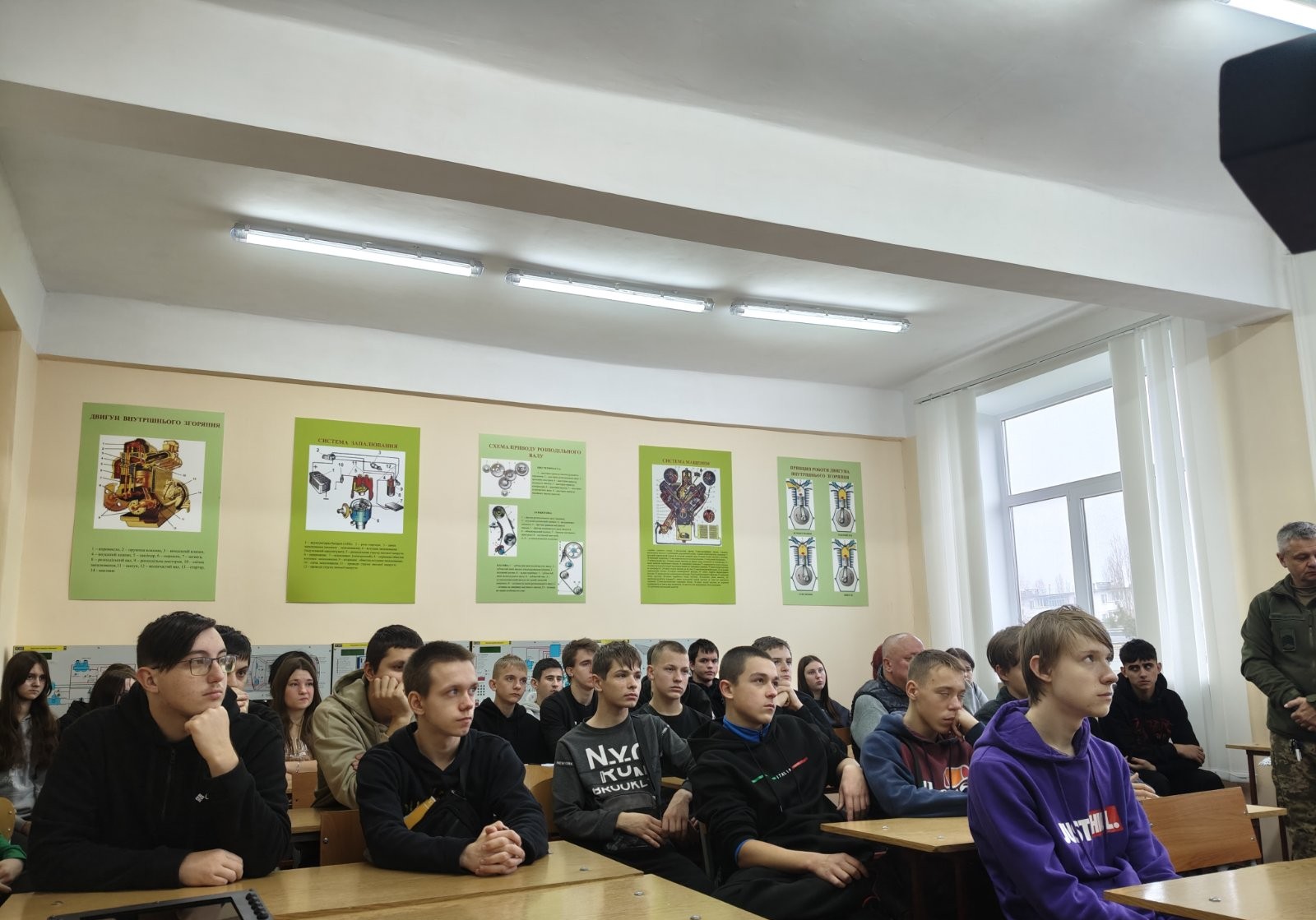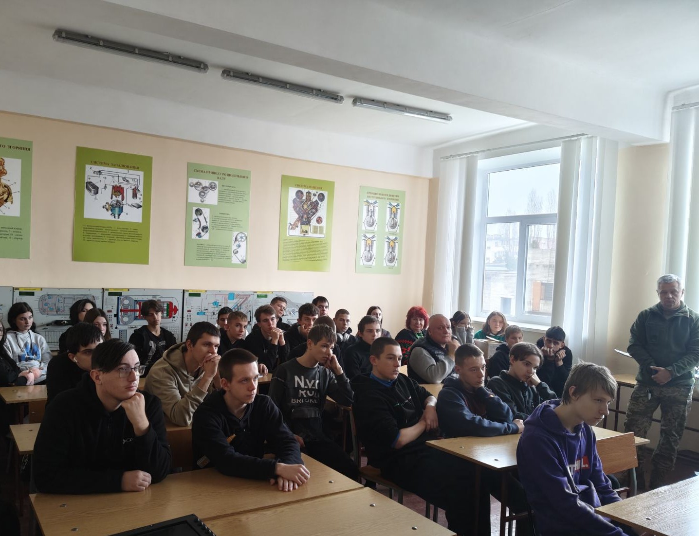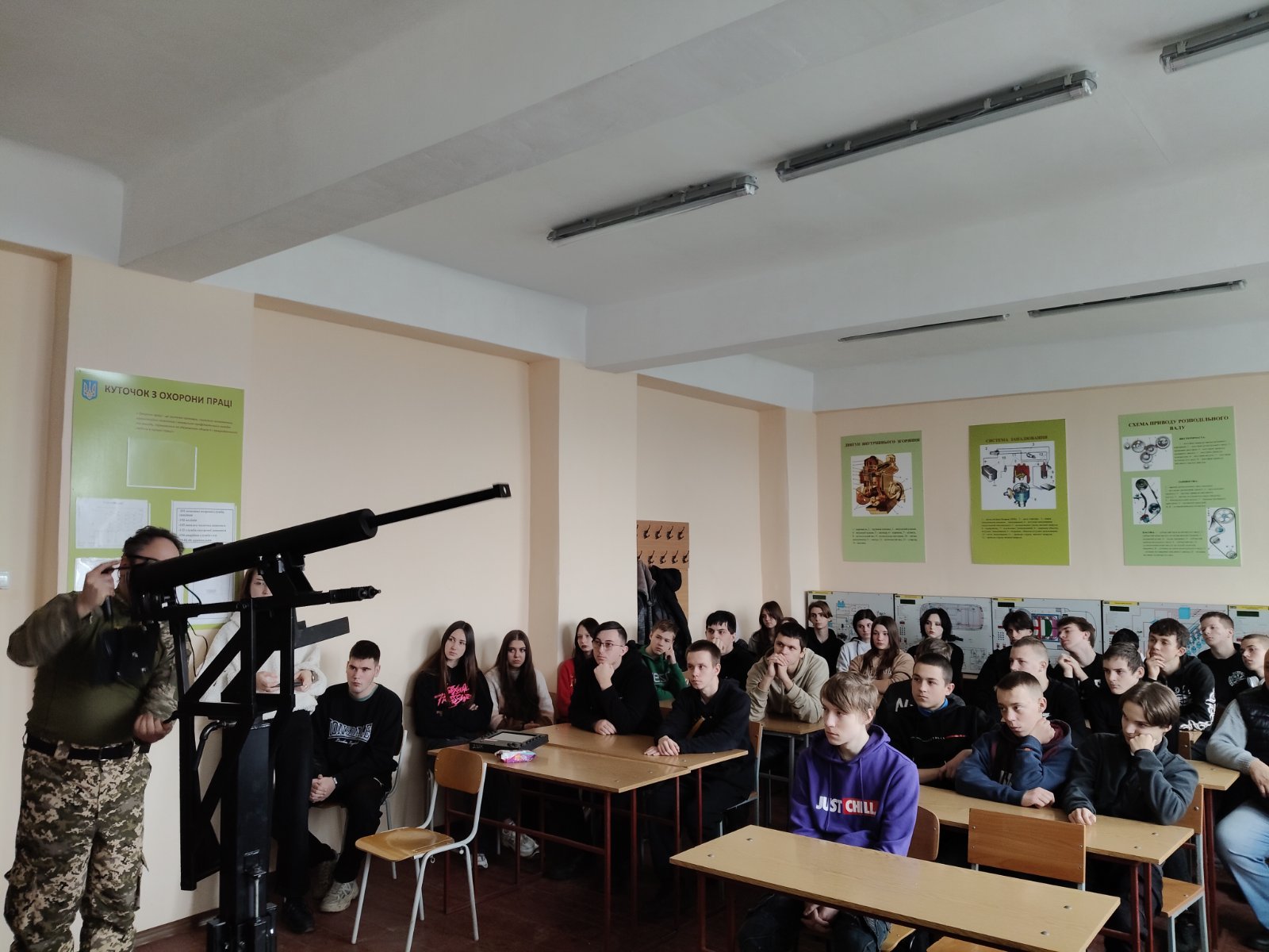 У відділенні РЦ ПТО №1 м. Кременчука відбулася надзвичайно змістовна та щира зустріч з військовими зенітної ракетної батареї 107 реактивної артилерійської бригади. Педагогічні працівники та здобувачі освіти мали можливість поспілкуватися з захисниками, які щодня стоять на варті безпеки нашої держави. Військові поділилися досвідом служби, розповіли про особливості роботи зенітної ракетної батареї, виклики та реалії, з якими стикаються на передовій. Теплим і щирим моментом зустрічі стали подарунки для наших гостей. Військовим передали смачні розписні пряники, які майстри виробничого навчання та здобувачі освіти власноруч випікали й розписували з любов’ю та вдячністю.