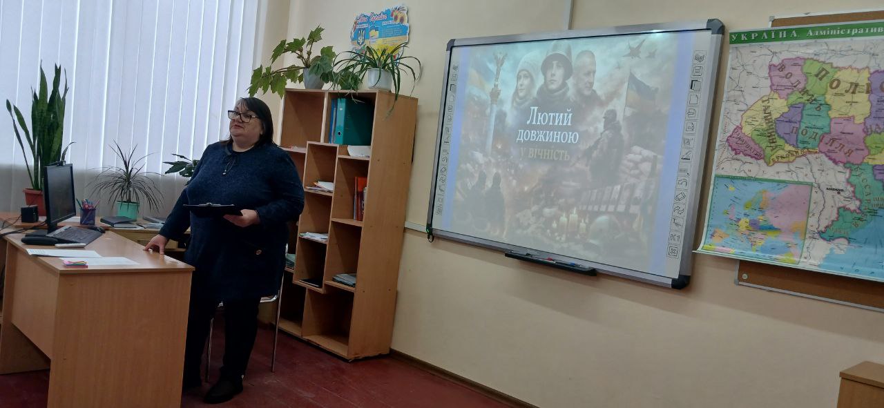 Саме цим надважливим подіям нашої сучасної історії була присвячена історична година «Лютий довжиною у вічність», яку для студентів відділення РЦ ПТО № 1 м. Кременчука провела викладачка історії Лариса Карпенко.