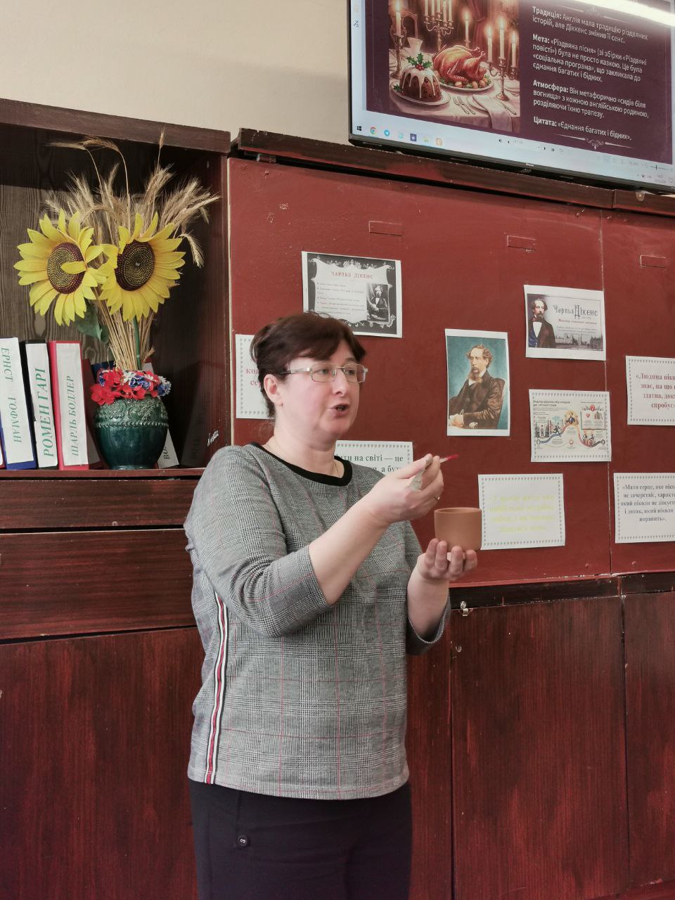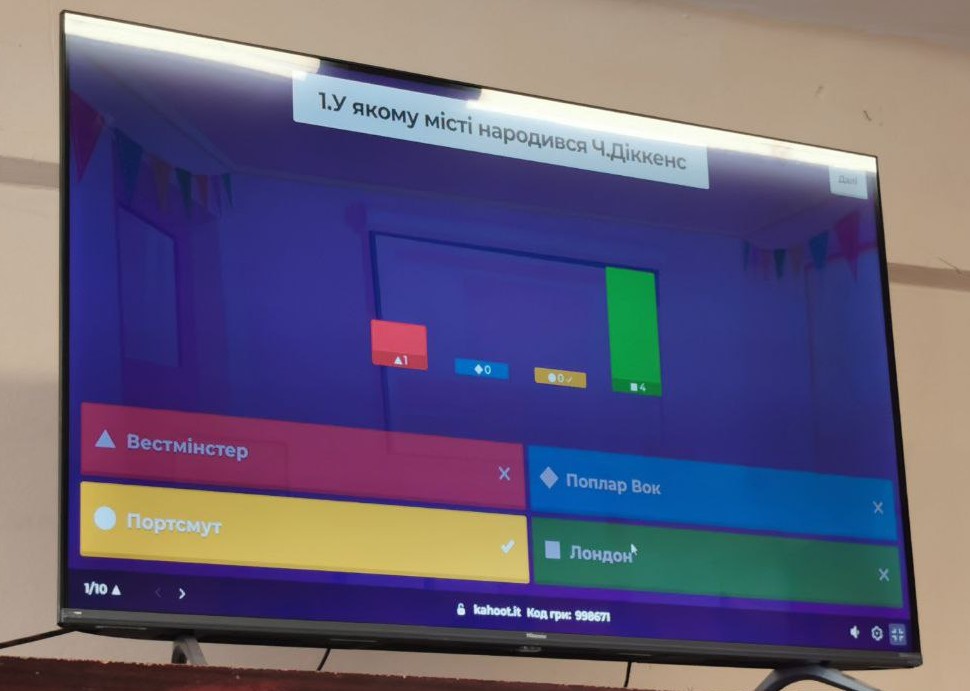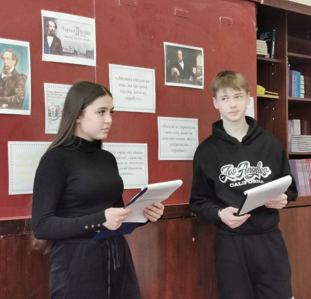 Учасники заходу поринули у світ творів великого англійського письменника, відкриваючи для себе не лише факти з його біографії, а й глибину думок, щирість почуттів та незгасну віру автора в добро і людяність. Перегляд тематичного відео допоміг краще відчути атмосферу епохи та зрозуміти, чому його герої залишаються близькими й сучасному читачеві. Інтелектуальним підсумком зустрічі стала інтерактивна вікторина на платформі Kahoot.
