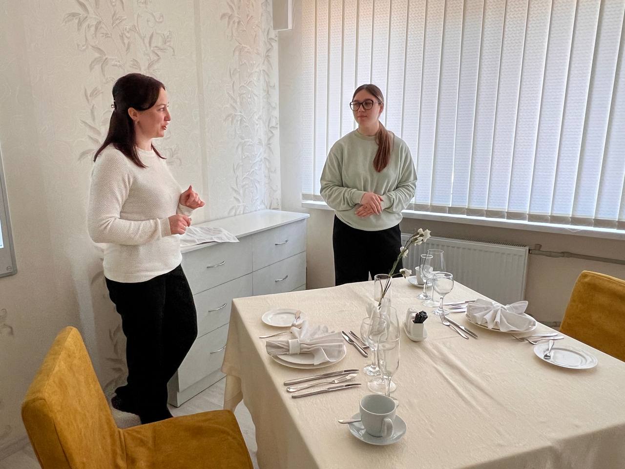 10 березня викладачі Вісич Віта і Шишова Ніна провели відкритий бінарний урок «Service in Restaurant/ Обслуговування в ресторані» у групі МА-24-3. Під час уроку здобувачі освіти поєднали професійні знання з практикою англійської мови. Студенти відпрацьовували лексику ресторанного сервісу, моделювали реальні ситуації обслуговування гостей, практикували діалоги між офіціантом і відвідувачем та вдосконалювали навички професійної комунікації англійською мовою. Такий формат уроку допоміг студентам краще зрозуміти особливості професійного спілкування у сфері ресторанного обслуговування та усвідомити важливість володіння англійською мовою для майбутньої професії.Заняття було динамічним, цікавим, практично спрямованим і сприяло розвитку професійних компетентностей майбутніх фахівців ресторанної справи.