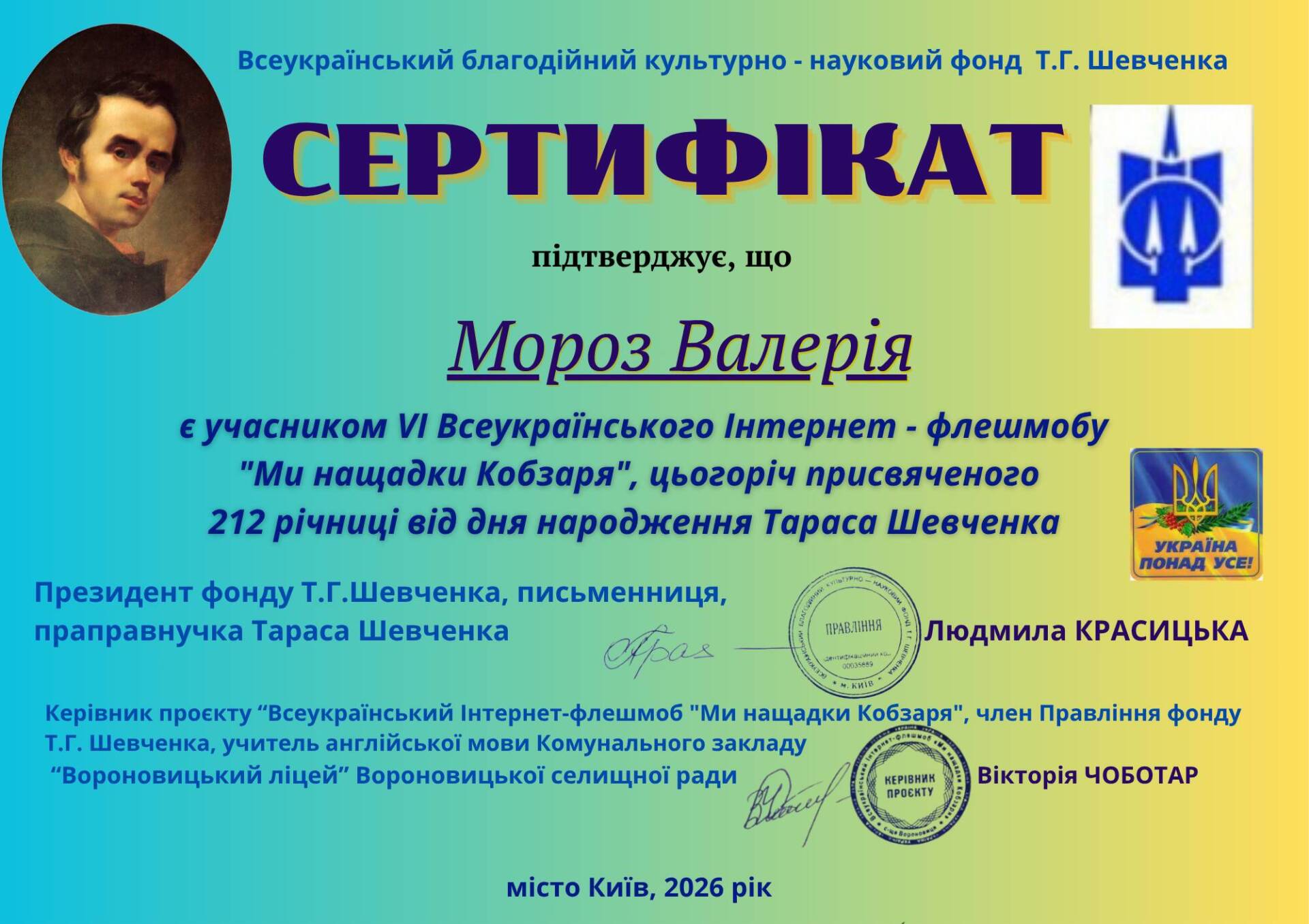 Участь у такому масштабному заході стала для молоді чудовою нагодою проявити свої таланти, творчість і патріотизм. За підсумками флешмобу всі учасники отримали сертифікати, що є підтвердженням їхнього внеску в популяризацію української культури та духовних цінностей. Щиро вітаємо наших студентів із цим досягненням! Бажаємо й надалі залишатися активними, натхненними та небайдужими до збереження й розвитку національної спадщини.